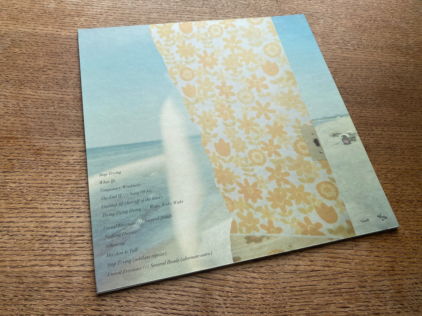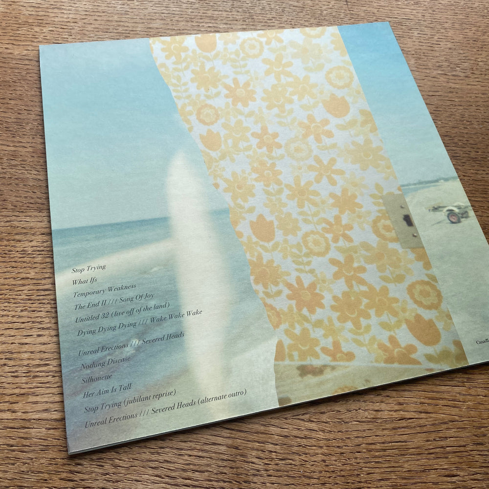 Following Siskiyou’s Polaris-nominated third full-length Nervous released in early 2015, Huebert was commissioned by New York-based artist/designer Stefan Sagmeister (of Sagmeister & Walsh) to write the theme song for The Happy Film, a feature-length movie accompaniment to The Happy Show installation project that had toured galleries in the mid-2010s – the art show and film themselves being ruminations on happiness that strongly echo Huebert’s own tone and sensibility. Sagmeister wanted the direct, unadorned aesthetic of early Siskiyou for the film music, leading Huebert to often write and record songs in the same day, in diaristic sketchbook form, without a thought towards the more ornate structures and developments of material he had just finished up with Nervous. This commission yielded the album’s title and the opening track “Stop Trying”(the eventual theme song for the movie) which includes a short looped clip of film dialogue repeating the line “trying is the problem; you’re trying to get somewhere as if you’re not somewhere”.