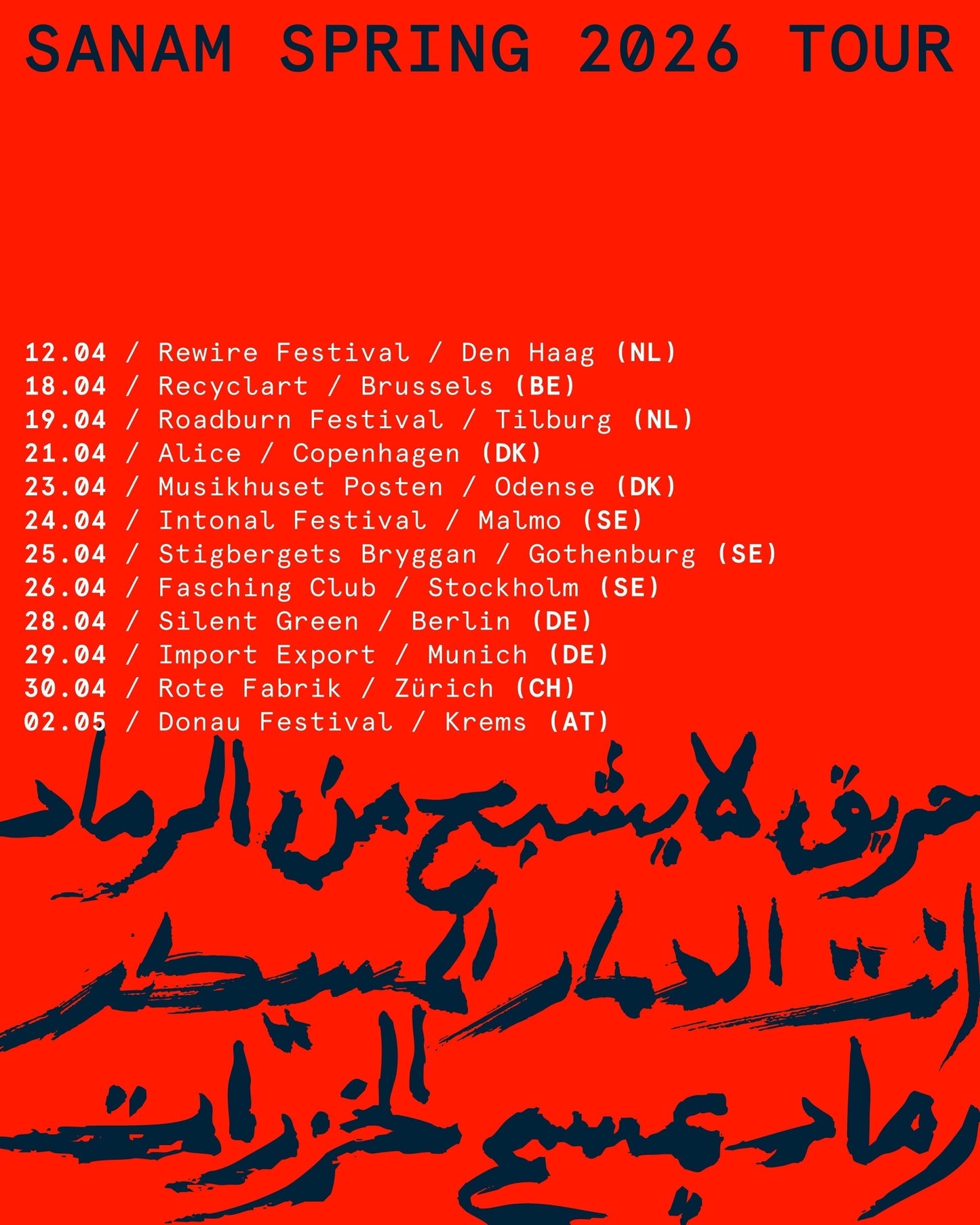 SANAM ON TOUREU Spring 2026 12 Apr 2026 – Den Haag (NL) – Rewire Festival18 Apr 2026 – Brussels (BE) – Recyclart19 Apr 2026 – Tilburg (NL) – Roadburn Festival21 Apr 2026 – Copenhagen (DK) – Alice23 Apr 2026 – Odense (DK) – Musikhuset Posten24 Apr 2026 – Malmö (SE) – Intonal Festival25 Apr 2026 – Gothenburg (SE) – Stigbergets Bryggan26 Apr 2026 – Stockholm (SE) – Fasching Club28 Apr 2026 – Berlin (DE) – Silent Green29 Apr 2026 – Munich (DE) – Import Export30 Apr 2026 – Zürich (CH) – Rote Fabrik02 May 2026 – Krems (AT) – Donau...