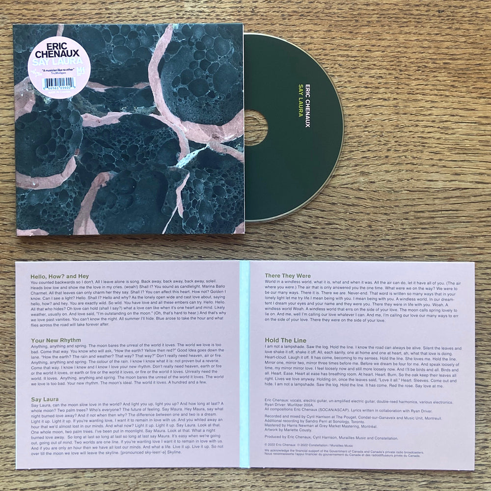 The new record by Eric Chenaux is his most immaculate and pristine. Say Laura perfectly incarnates the counter-intuitive interplay of instrument and voice that Chenaux has been revealing and revelling in throughout the past decade: his gently unhinged juxtaposition of resplendently smooth, seductively assured singing and puckish, frazzled, thoroughly destabilized guitar could come from no other musician. The five wandering, wondering ballads on Say Laura bring Chenaux’s semi-improvised but keenly intentional songwriting to its fullest, clearest, warmest and coolest articulation; uncompromising and generous, hyper-specific and loose, spartan and luxurious, elemental and ornate.