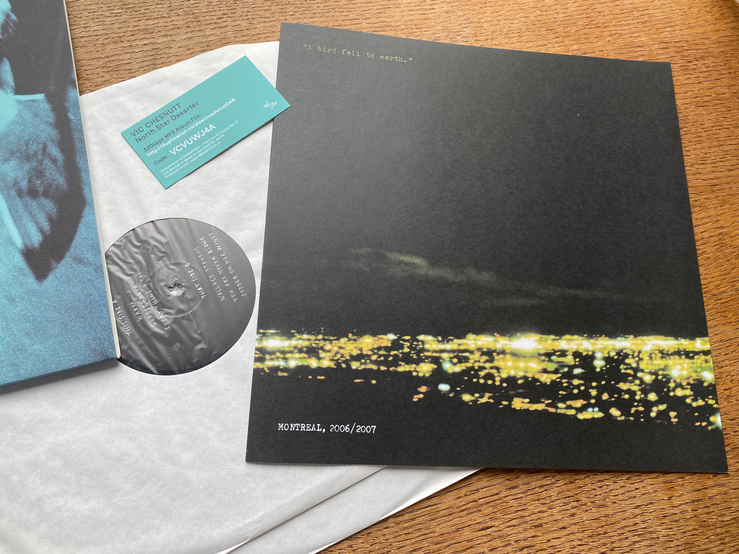 We have been massive Vic Chesnutt fans for many years. Prior to starting Constellation together in 1997, among the first records we bonded over was Is The Actor Happy, a slab of vinyl played so often (and so often late at night) that its grooves are well chewed. Our friend, Brooklyn-based filmmaker Jem Cohen (Benjamin Smoke, Instrument, Chain), had known Vic for many years. When Jem proposed that Vic make his this album at the Hotel2Tango studio in Montreal, with various Constellation musicians (along with a couple of American friends) as players for the session, we were thrilled. When we heard the results, we were floored. When offered the opportunity to release the record, we were honoured.