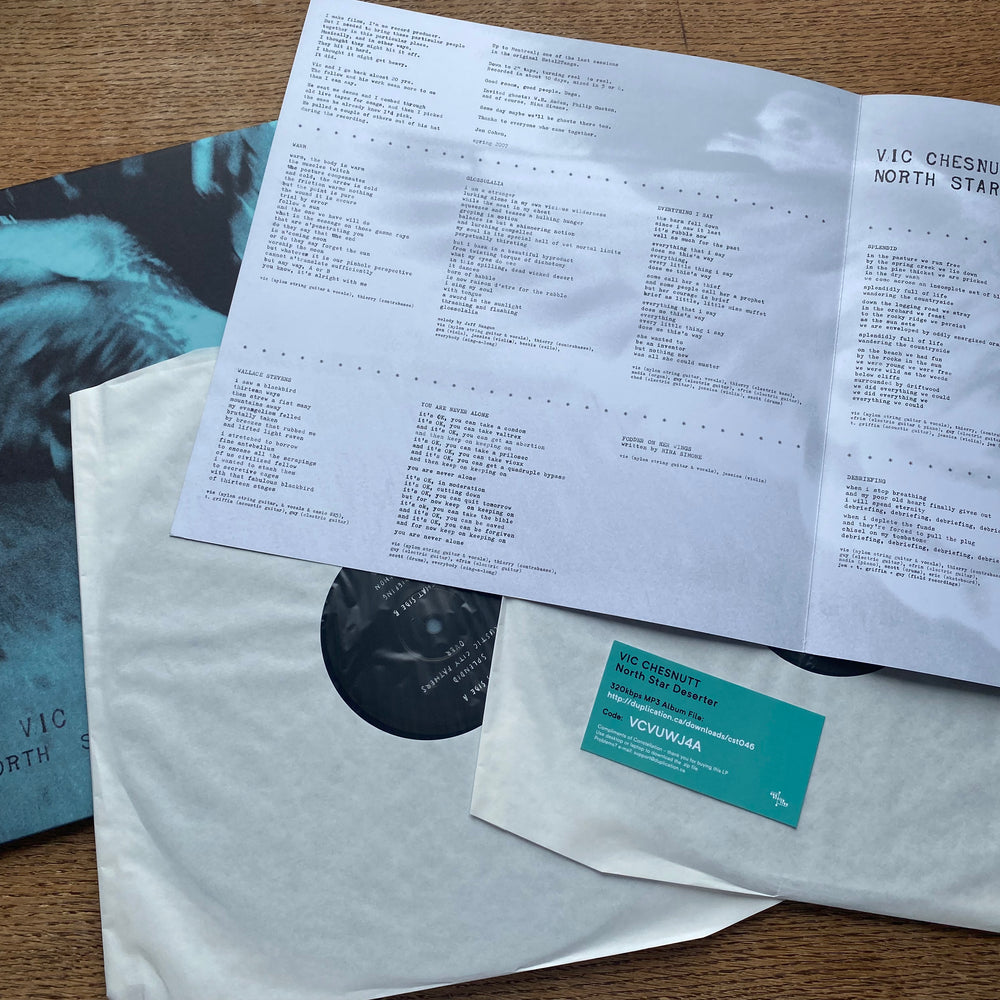 The songs on North Star Deserter are some of the most bracing and intense we had yet heard from Vic: macabre and fearless, playful and funny, at times deeply personal and at others, incongruously hopeful. The broad cast of players – all seven members of Thee Silver Mt Zion Memorial Orchestra & Tra-La-La Band, along with Guy Picciotto (Fugazi), Chad Jones & Nadia Moss (Frankie Sparo), Eric Craven & Genevieve Heistek (Hangedup), Bruce Cawdron (Godspeed You! Black Emperor, Esmerine) and T. Griffin (The Quavers) – offered influences and approaches to Vic’s music that yielded a record unlike any other in his substantial discography.