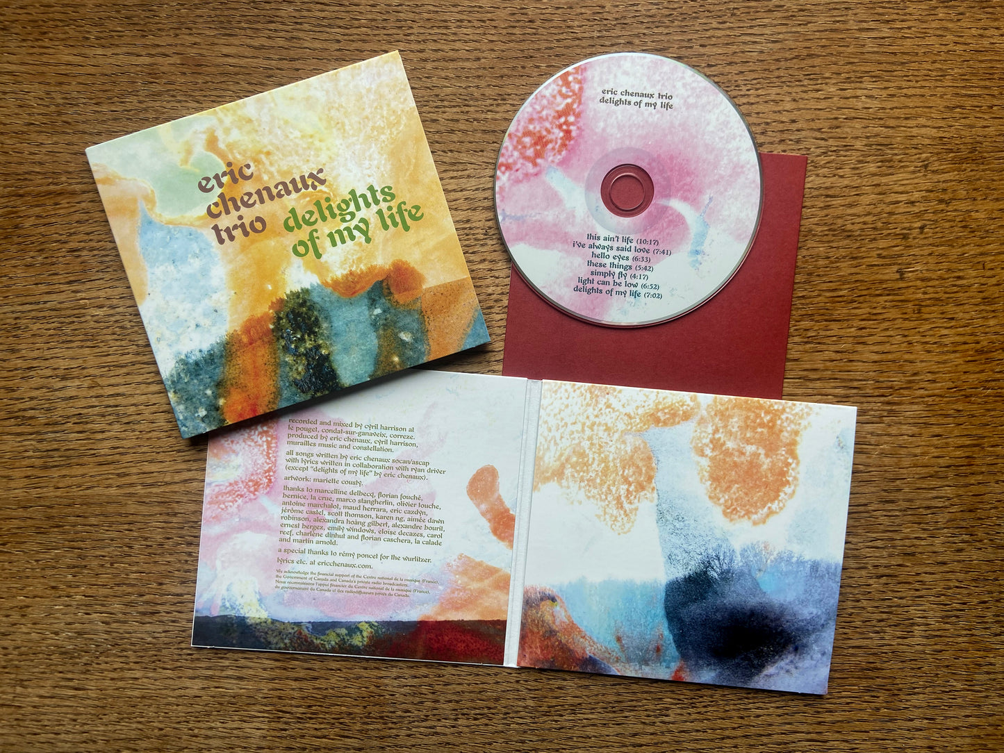 CD in custom paperboard mini-gatefold jacket + inner disc sleeve. Artwork by Mariette Cousty.