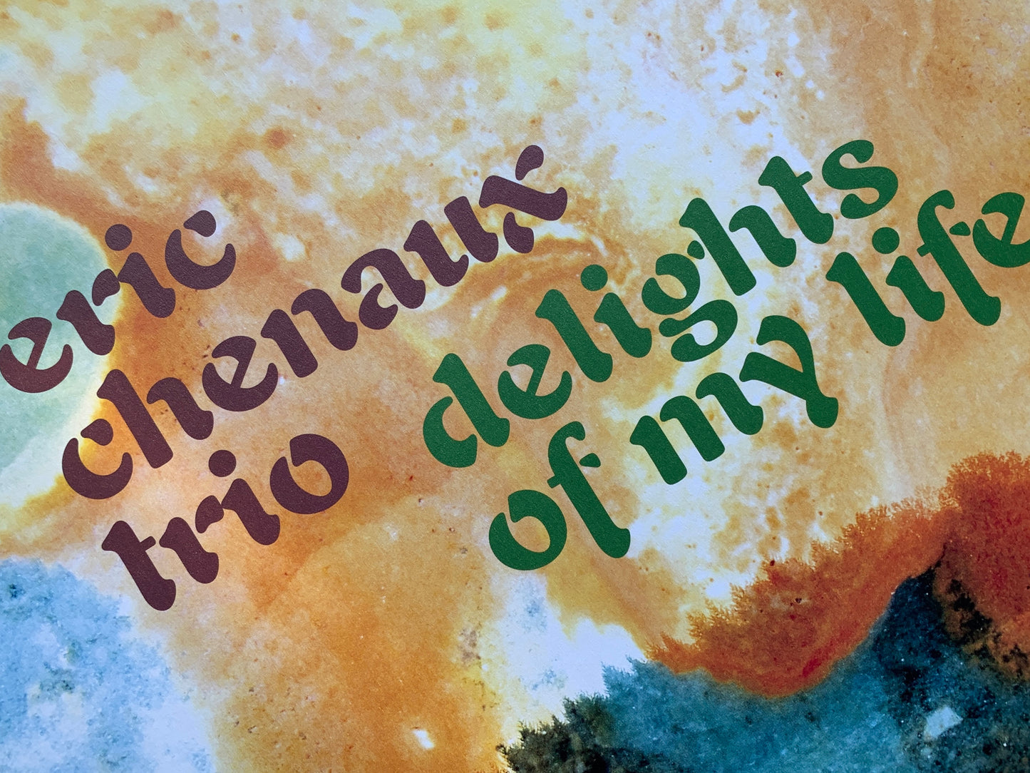 Delights Of My Life opens a new chapter for the singer/guitarist and formally introduces the Eric Chenaux Trio, with Toronto-based musicians Ryan Driver on Wurlitzer organ and Phillipe Melanson on electronic percussion. Driver is a longtime collaborator, appearing on several of Chenaux’s solo albums (even embedded into the very title of the 2010 masterpiece Warm Weather With Ryan Driver). Melanson has a long list of involvements that include Bernice, Joseph Shabason, and U.S Girls, and a recent release with his Impossible Burger project on Chenaux’s own experimental label Rat-drifting, but this marks the first fulsome involvement between the two as players on a recording.