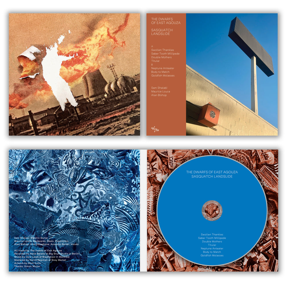 Sasquatch Landslide. A landslide of hazy configurations. Blurriness, far from a lack of detail, is an embroidering of detail, a horizontal expansion of surface and swarms of light. The name “Sasquatch” derives from the Salish word se'sxac, which means “wild men.” And Sasquatch Landslide is wild. Everything is unravelling. Offset. Décalage. A whole host of slippery tempos and pulses as the organs, guitars and saxophones loiter and lope over a skipping hop of beats, and everything emerges always mid-stream. It is all middle with no halfway point, no dead center, no bullseye. Everything twangs, moans, sweeps, slips, swings, skitters, slides, and grooves out of nowhere. And the almost-human voice with no mother-tongue.
