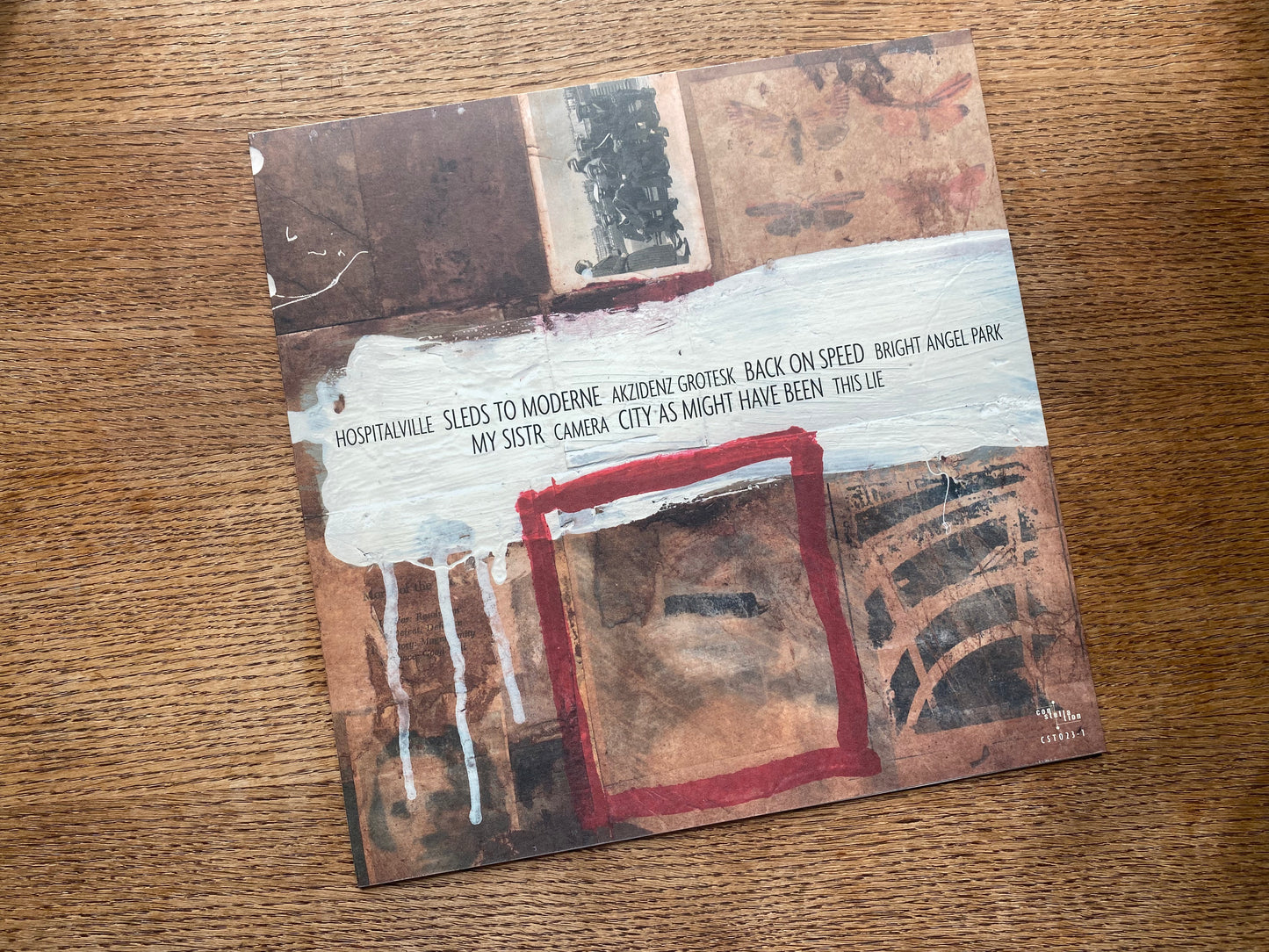 Sparo’s inimitable intimacy is well-preserved on several of these tracks; the fragility of guitar paired with Moss’ piano/organ can be heard to great effect on “Bright Angel Park” and “This Lie”. With an additional element – bass in “My Sistr”, digital treatments in “Camera” – the carefully expanded palettes play with countervailing forms: modern jazz ballad and naive music-box lullaby. But Sparo also assembled larger ad hoc bands for various set pieces on the album. Album opener “Hospitalville” is a fluid, slow-burning swing complete with drums, bass and trumpets – a brilliant arrangement set pumping by Efrim’s heavy compression treatment (he recorded the album at the original Hotel2Tango). A men’s choir later makes a brief appearance, as do some digital de/reconstructions, on the record’s two rock songs, “Akzidenz Grotesk” and “Back on Speed”. Sparo can always be counted on for top-notch reflection and erudition in the lyrics department, so if you enjoy language, give these a close listen. A very fine and complex collection of poetic music.