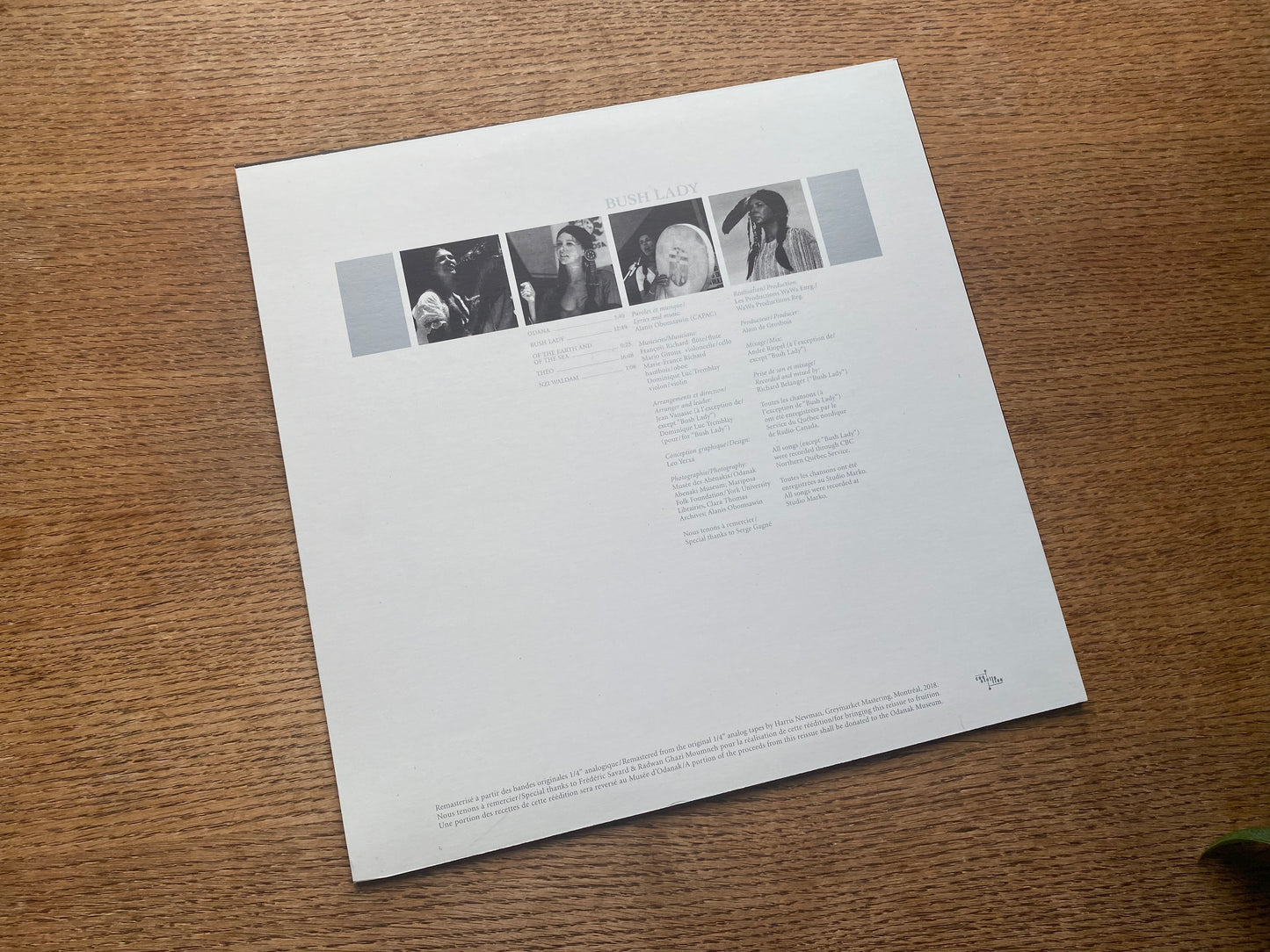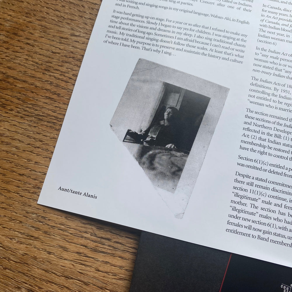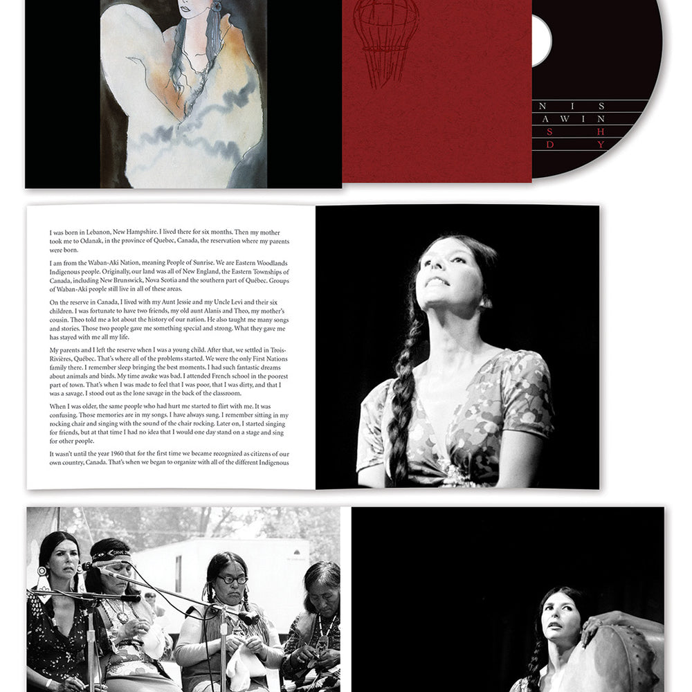Obomsawin kept her musical output percolating alongside her burgeoning documentary film career, with performances at the legendary Mariposa Folk Festival among others. In the mid-1980s Canada's national broadcaster (CBC Radio) invited Obomsawin to record an album; unsatisfied with these recordings, she reclaimed the master tapes, remixed the material, re-recorded the title track from scratch, and issued the ensuing Bush Lady album on her own private press in 1988 complete with her own artwork and liner notes. Lacking formal distribution - and with Obomsawin focused primarily on her documentary film career - only a portion of this pressing was sold at the time, the remainder occupying a closet in her Montréal home. The album has grown to become an increasingly legendary rarity ever since.