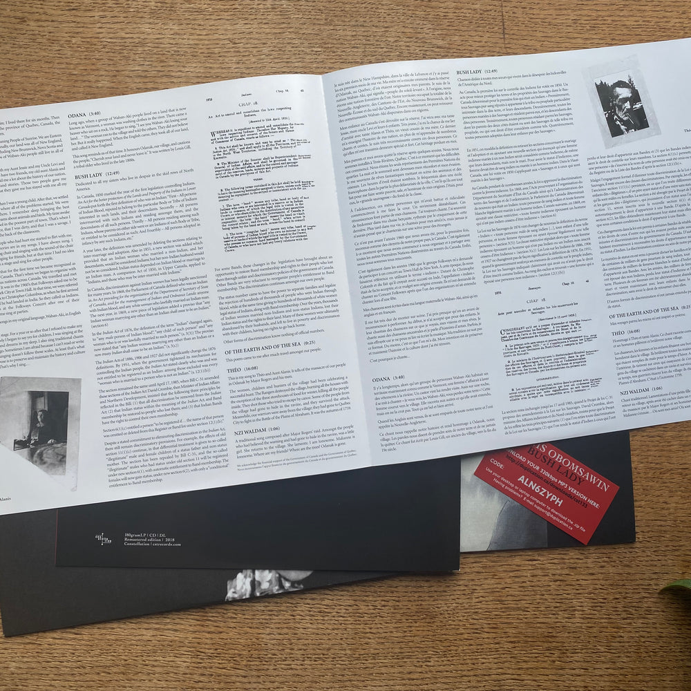 Audiophile 180gram pressing in midnight ultra-black vinyl from Optimal (Germany) comes in a 24pt jacket printed on 100% recycled paperboard with artworked inner sleeve, 12"x24" liner notes insert, 12"x24" poster, and 320kbps MP3 download card. These reissues faithfully recreate Obomsawin's original 1988 cover art and liner notes (which have been slightly updated/corrected by the artist) while including some additional archival images in the liner notes and inside gatefold (on CD) and in the printed inner sleeve and pull-out poster (on vinyl).