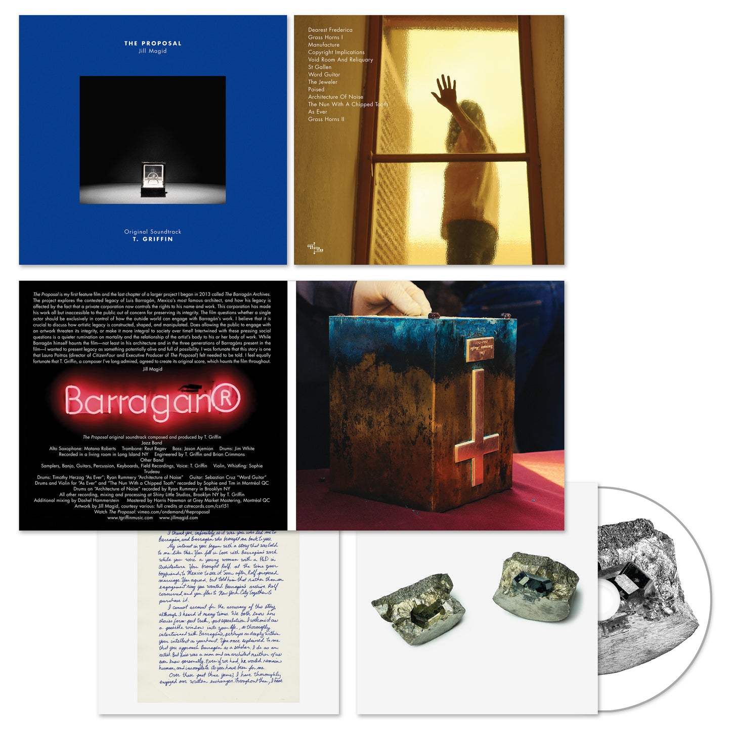 The Proposal is the original score by composer T. Griffin for the acclaimed feature-length artworld documentary by multi-disciplinary artist Jill Magid. This genre-defying film (the concluding work in Magid’s larger art project The Barragán Archives) explores the contested legacy of the Mexican architect Luis Barragán, raising questions of intellectual property, patrimony, and privatisation through the lens of an idiosyncratic personal journey—and as an art intervention in its own right. Griffin wrote, performed and recorded this evocative soundtrack with an understated but wide-ranging electro-acoustic sensibility, deftly complimenting the film’s enigmatic narrative, the tensions of Magid’s personalized investigations, and the discreet beauty of Barragán’s architectural spaces, which are documented in slow-moving visual sequences throughout the movie.
